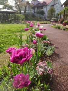 私が働く桔梗屋河口湖フラワーガーデンでは、桜が丁度満開を迎えています。