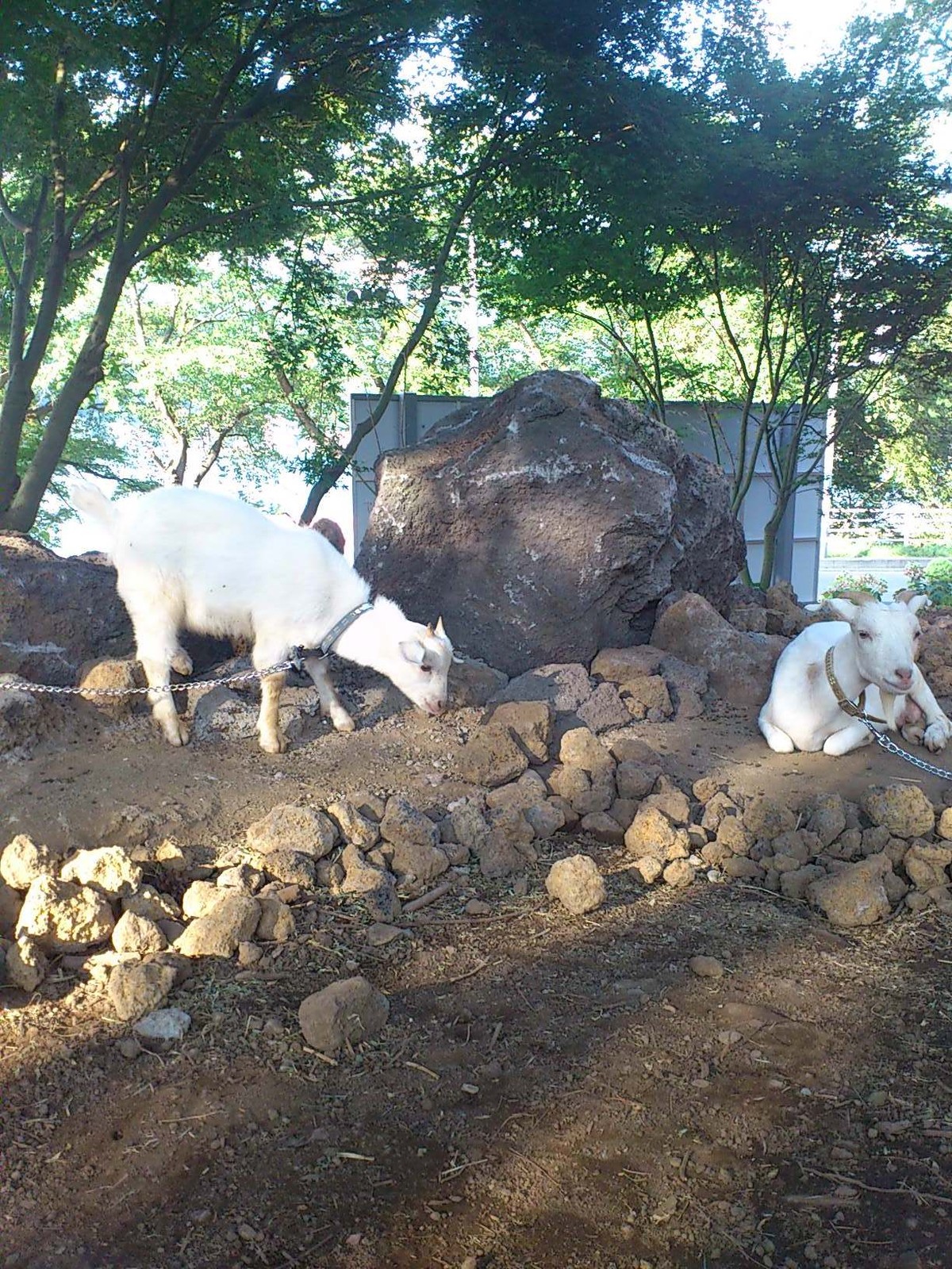 2012年08月02日 ハイジの仲間たち 公開済み: 2012年8月2日更新: 2012年8月2日作成者: HEIDI'S FLOWER GARDEN・桔梗屋飲食店カテゴリー: HEIDI'S FLOWER GARDEN・桔梗屋飲食店 今日もいるかなぁ?ハイジズガーデンにいるかわいいあのこ。 このハイジズガーデンの大きな看板の奥をよく見てみると……… いましたいましたー。こんなところに白いやぎが! ハイジに出てくるユキちゃんそっくり。 「メェ~~~~」と、元気に鳴いています! 驚かせないようにそーっと近づいて… 日陰でのほほんとくつろいでいる姿動物って癒されますね。 堀内