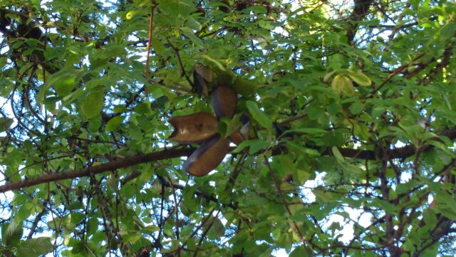またこのアケビですが、ヤギ小屋の隣にある木に巻き付き自生しています。