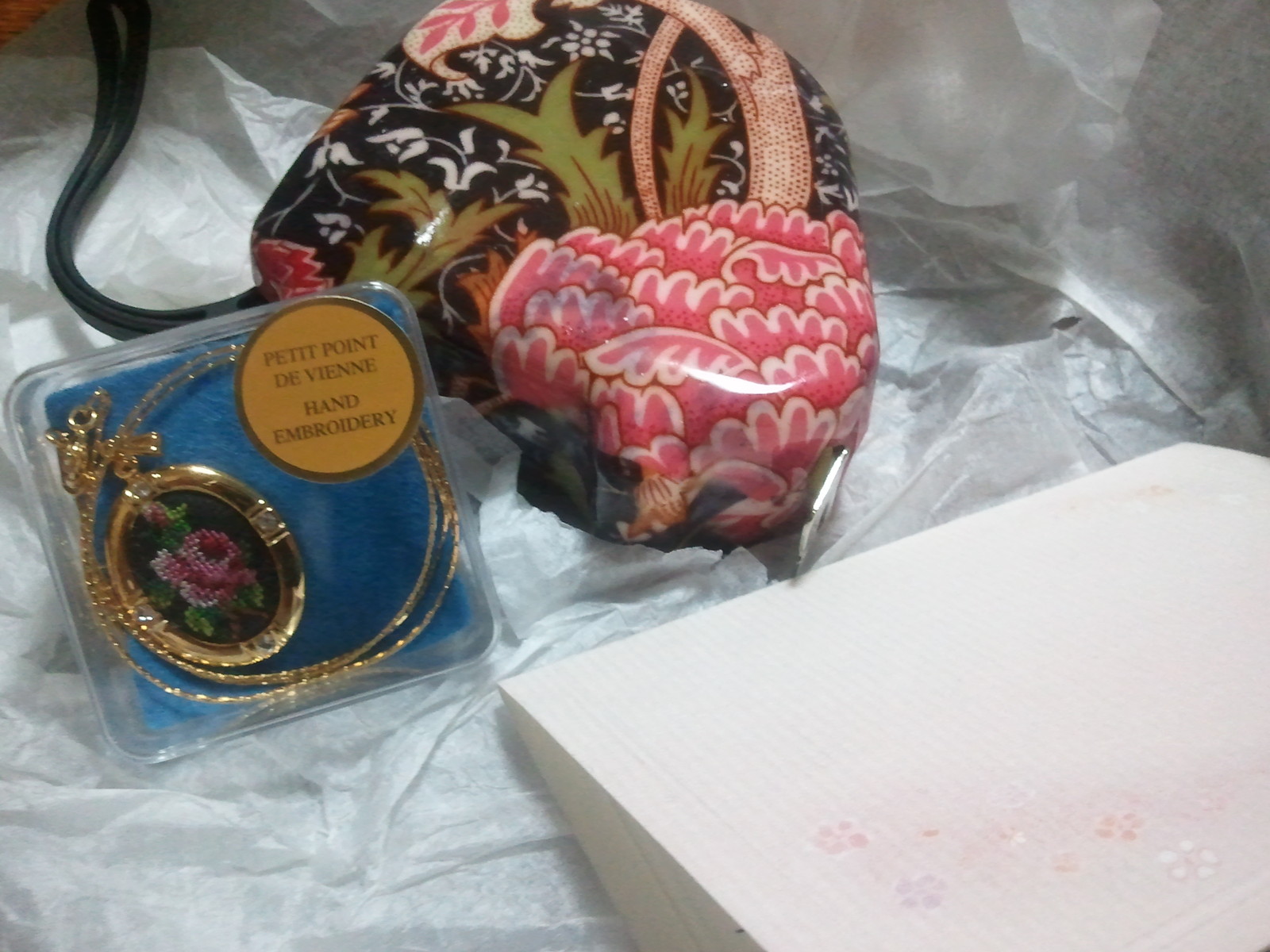 桔梗信玄餅の入った巾着袋をもってらっしゃるのですが…紺色が断トツ一位の人気でした。