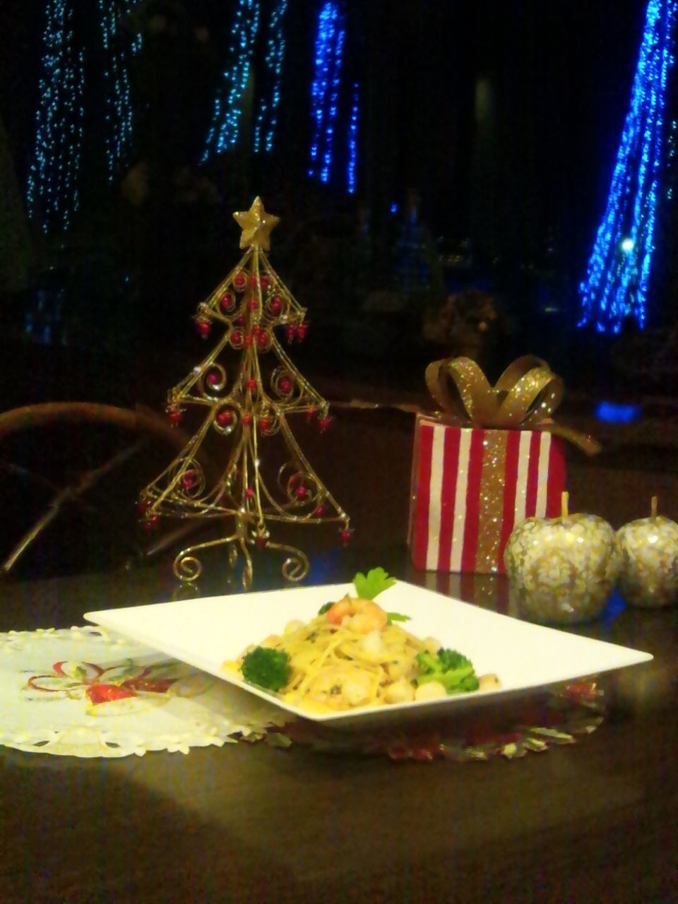 ふと、目線を高めに送るとブルーとホワイト…色とりどりのイルミネーションが点灯しました。