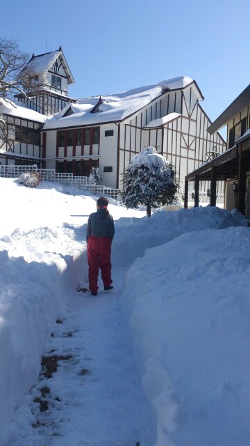 昨日みんなで雪かきをしたのですが、今日はつるつるで