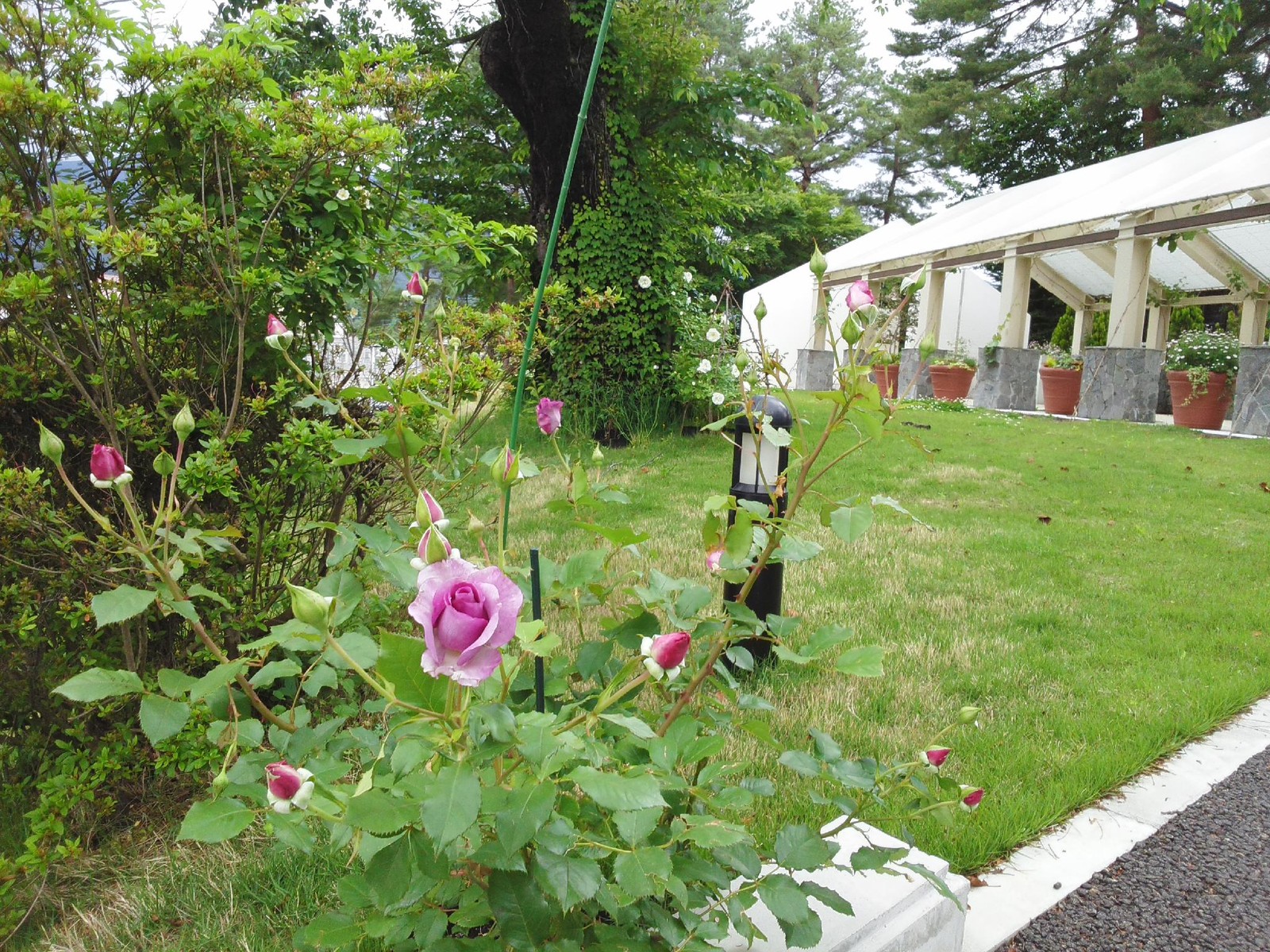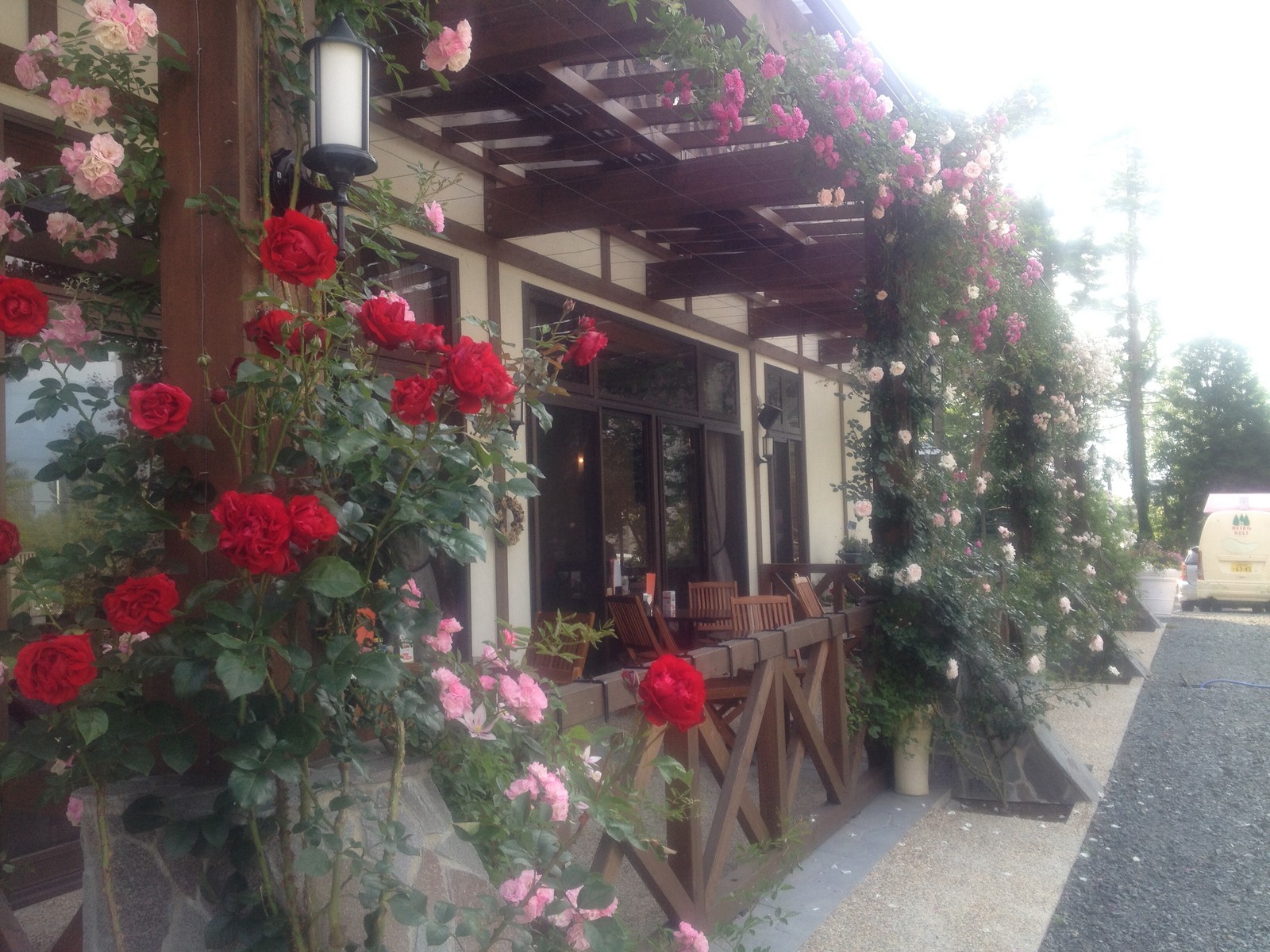 綺麗に咲き始めたバラや沢山の花たちの中行われるブライダルフェアです、