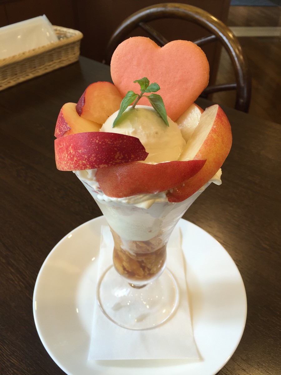 今月末には桃のパフェも始まり、カフェタイムにテラスのお席でコーヒーや紅茶と共に