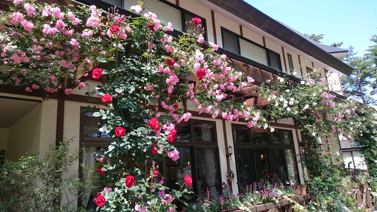 今ハイジズガーデンでは薔薇がよく咲いていて、天気のいい日にはとても綺麗に見えて