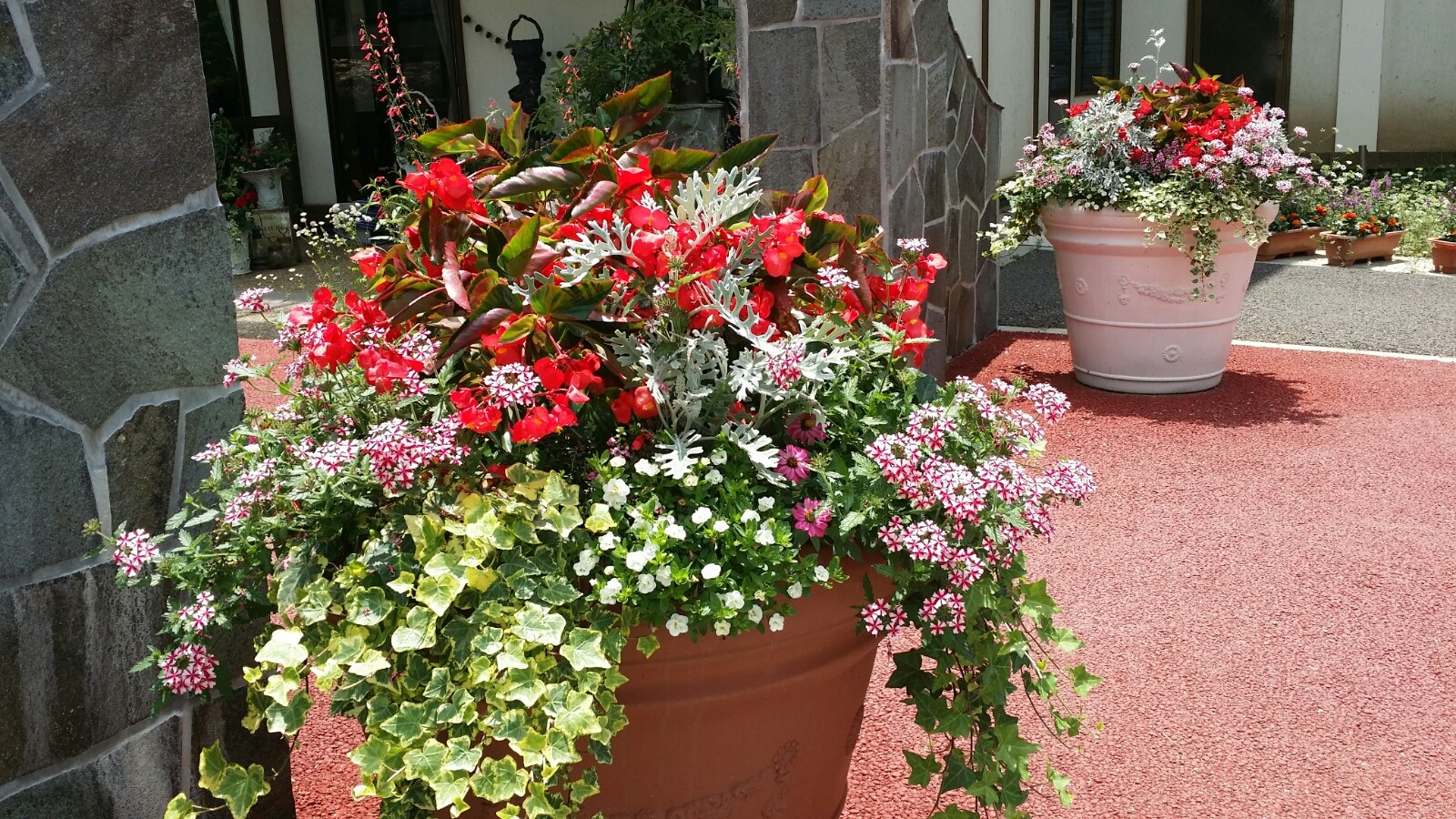 日中の暑さに負けずガーデン内の花達は元気に色をつけ咲いてます。青い空の下で輝くほどまぶしいくらい色鮮やかです。それとは対称的に地味な色ではありますが頑張って葉の数を増やしているアボカドがあります。